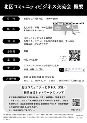 - 【12/5(金)】北区コミュニティビジネス交流会(@東京都北区)